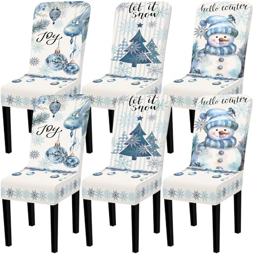Preboun Lot de 6 Housses de Chaise de Noël, Extensibles, Amovibles et lavables pour chaises de Salle à Manger, Noël, Maison, cérémonie, décoration de fête, 3 Styles (Blanc Classique)
