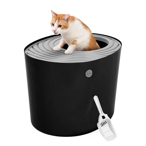Iris Ohyama, Maison de Toilette pour Chat avec Pelle, Max. 7 kg, Noir, Ouverture en Haut, Bac a Litiere avec Couvercle, Amovible, pour Chaton, Grande Capacité, sans BPA, Nettoyage Facile, PUNT-530