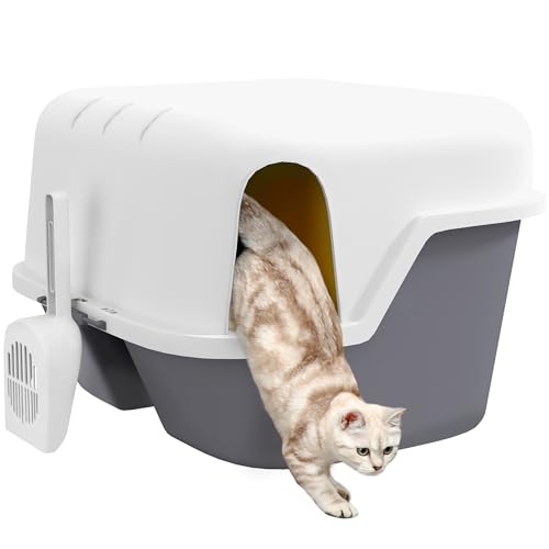 Aimé | Maison de Toilette Chat 52x40x39 cm | Bac Litière pour Chat avec Toit Ouvrant, Porte Battante, Poignée de Transport et Pelle | à Filtre Charbon Anti-Odeurs