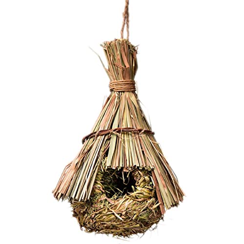 Laikoutd Petit Nid D'oiseau Cabane en Paille Tissée À La Main Maison De Colibri Suspendue pour Accessoires Cage Nidification Abri du Nid Paille Froide Cabane en Maisons Tissées À La Main