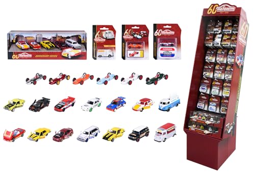Majorette - Présentoir Anniversaire 60 Ans - 136 Véhicules Miniatures en Métal - Echelle 1/64ème - Premium, First Edition, Deluxe, Giftpack - 212057807