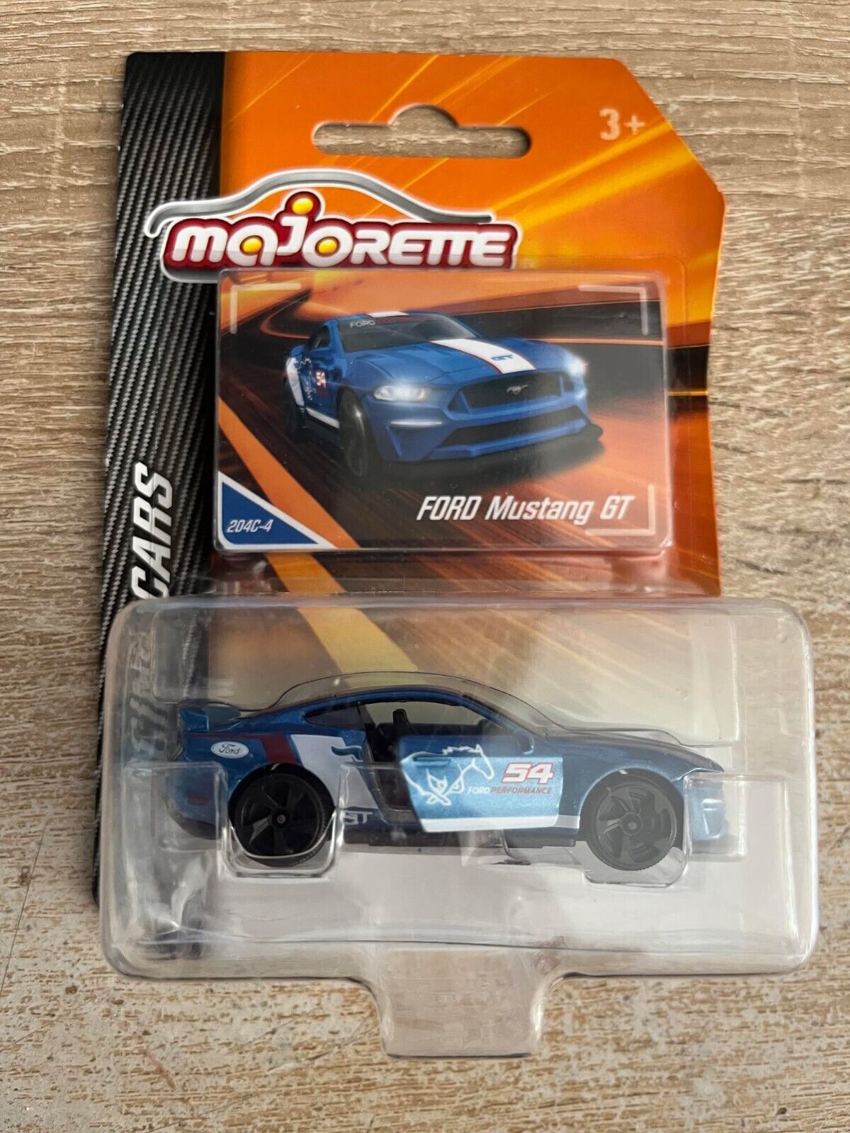 Majorette Showroom Deluxe Cars Ford Mustang Dark Horse bleu Logo + boite NEUF