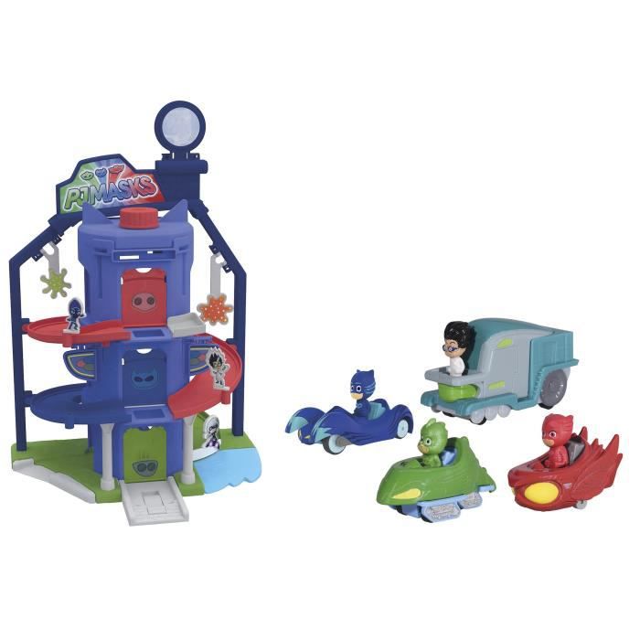 Majorette 7/203145002 PJM Garage QUARTIER General + 4 VEH PJ Masks Pyjamasques Set de voitures miniatures, multicolore
