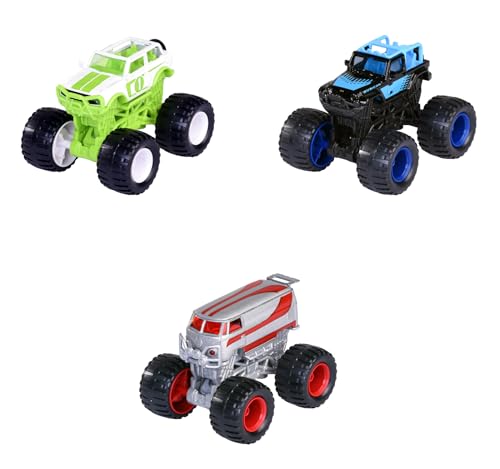 Majorette Monster Rockerz (1 voiture 7,5 cm) - Voiture jouet Monster trucks Limited Edition 10 en métal avec roue libre et fonction de direction - Choix aléatoire de 3 voitures - Pour enfants à partir