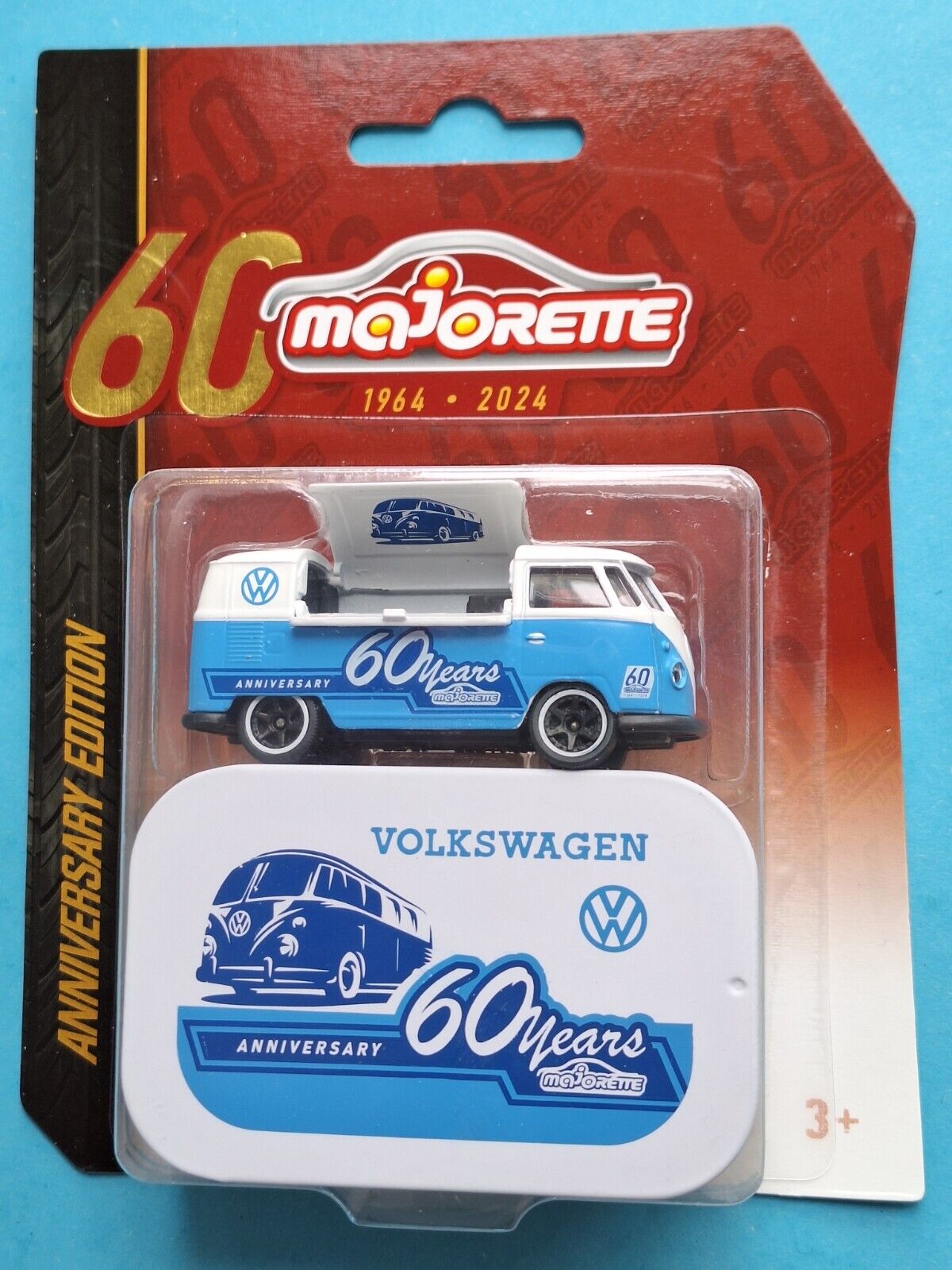 Véhicule miniature - MAJORETTE - Volkswagen T1 35cm - Pack avec 3 véhicules 1/64ème - Bleu