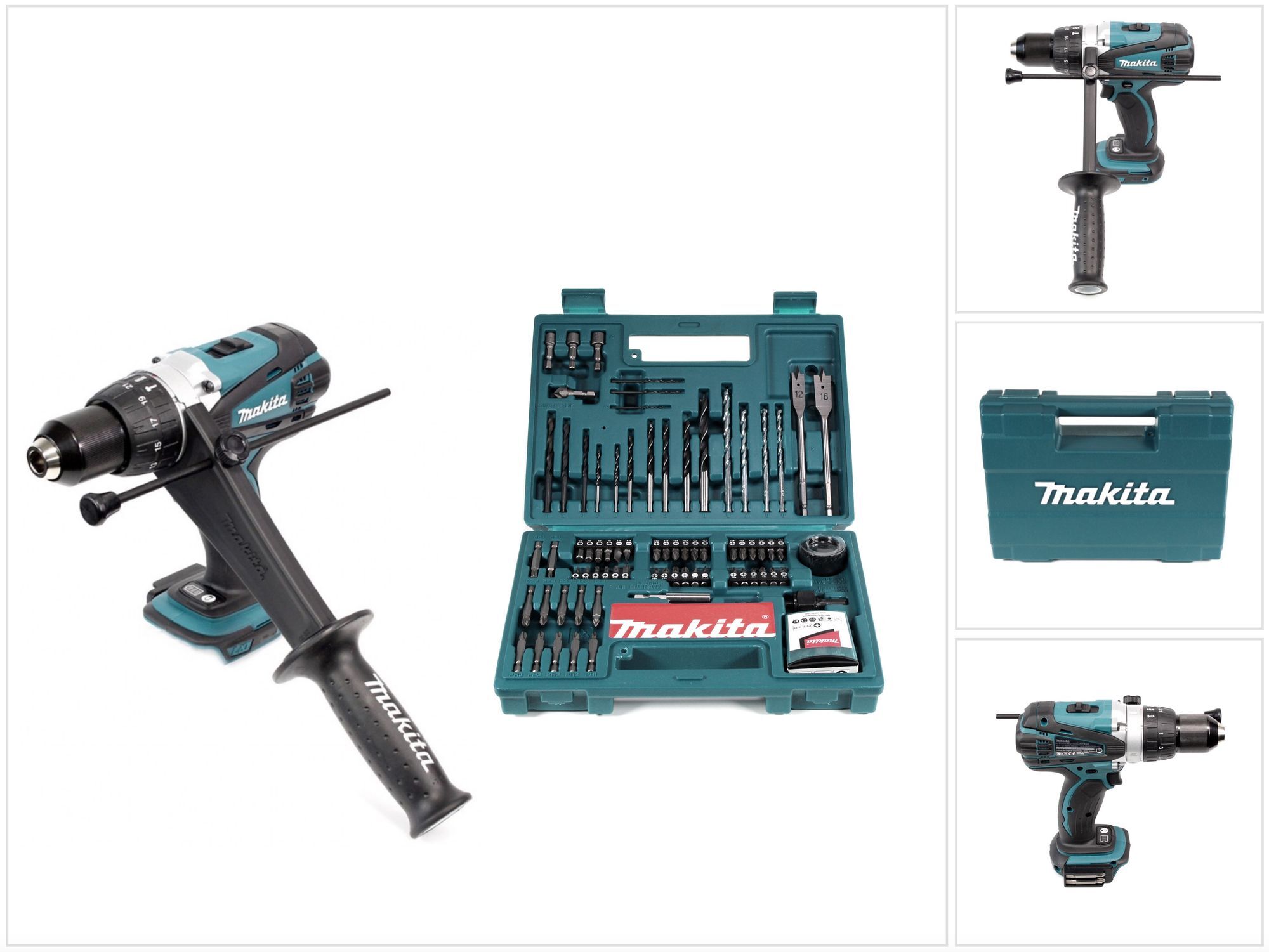 Makita DHP 458 Z Perceuse-visseuse à percussion sans fil 18V 91Nm + 100 pièces de Faises et Trépans pour perceuse Makita