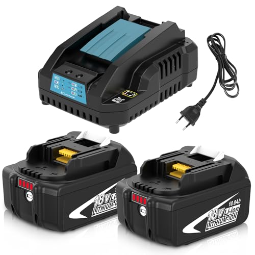 Pack de 2 Batteries 10.0Ah de Rechange pour Makita Batterie 18V BL1860B + Chargeur DC18RC Compatible Outils sans Fil LXT DHP485 DTD154 DHS68