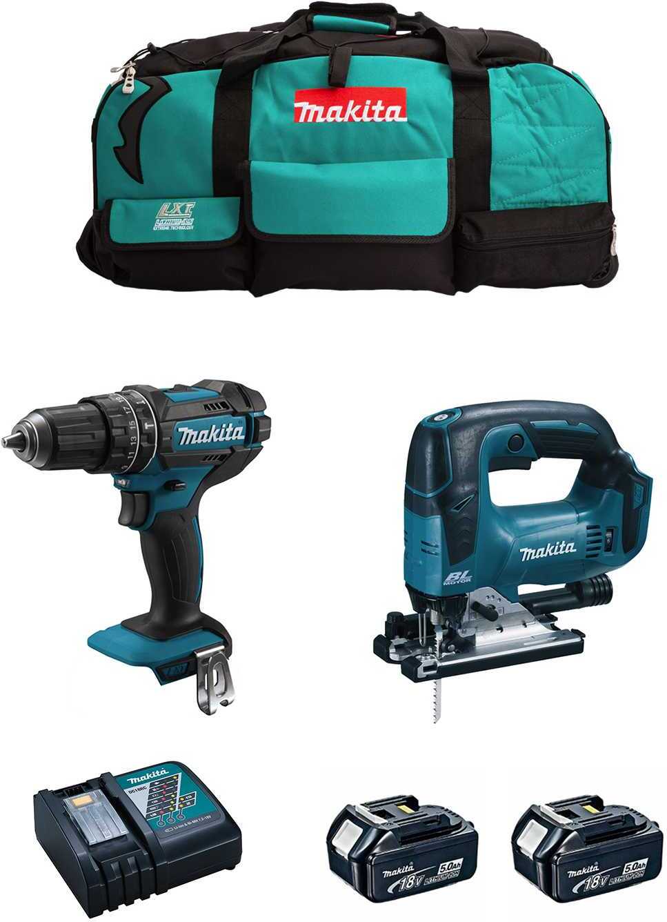 MAKITA Kit MK202 (DHP482 + DJV182 + 2 x 5.0 Ah + DC18RC + LXT600)