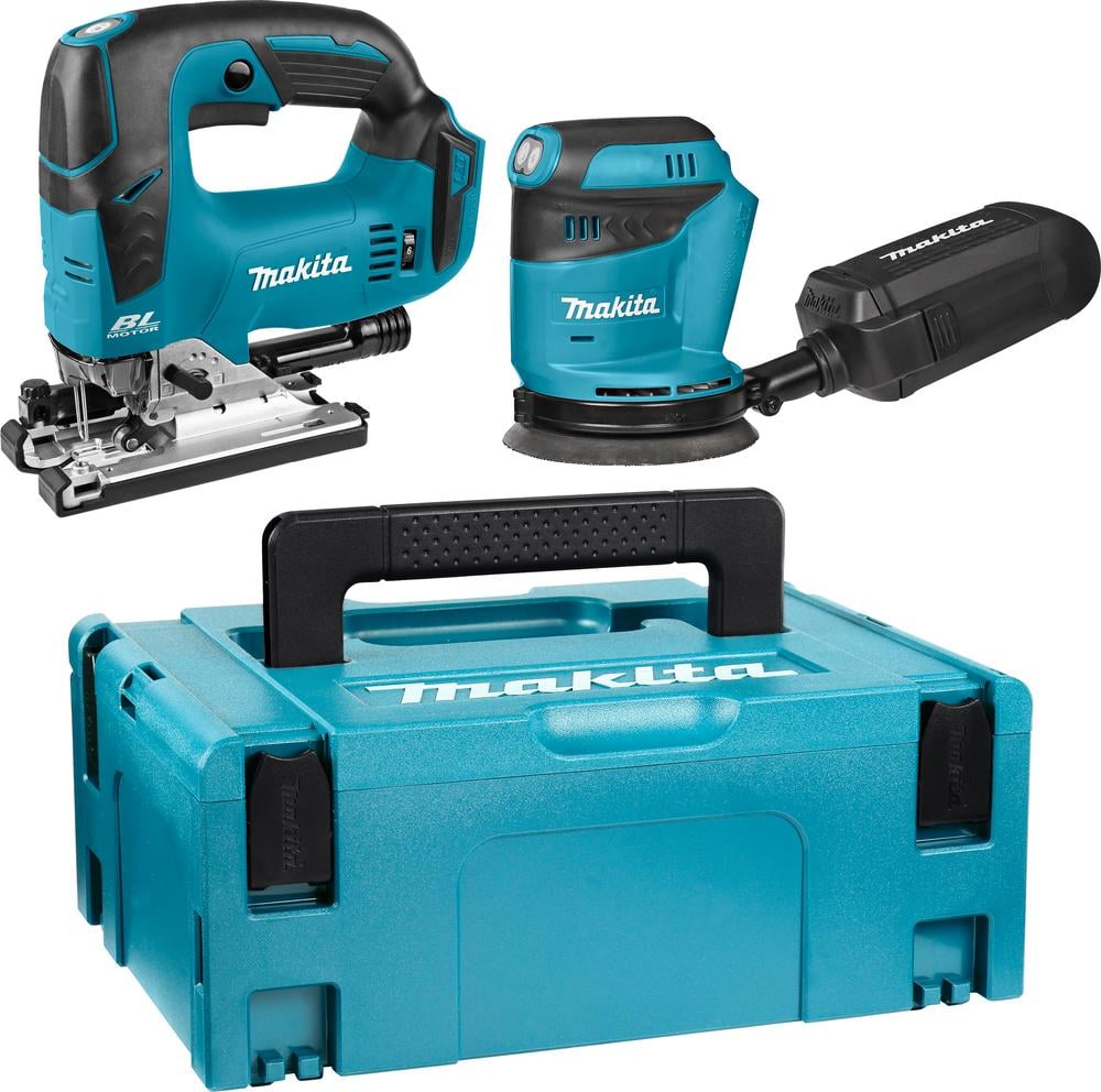 Ensemble de 2 machines 18v lxt - scie sauteuse djv182 + ponceuse excentrique db o180 - makita - sans batterie ni chargeur - 1 makpac - dlx2276j DLX2276J