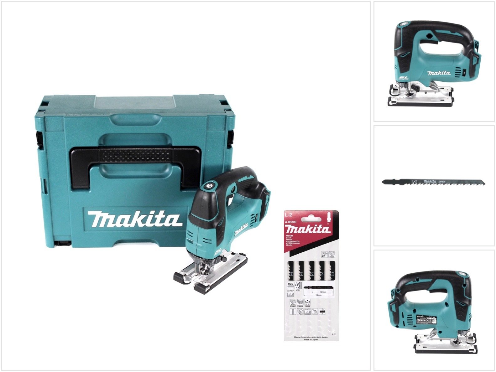 Makita DJV 182 ZJ Scie sauteuse sans fil 18V Brushless 26mm + Coffret Makpac + 5 Pièces de Lames de scie Makita L-2 pour Bois ( A-86309 ) - sans Batterie - sans Chargeur
