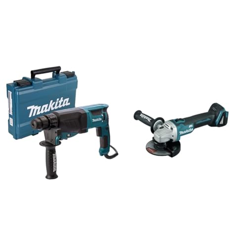 Perforateur burineur SDS+ 800 W 26 mm en coffret - MAKITA HR2630 & DGA504Z - Mini-meuleuse à batterie 18V lithium-ion 125 mm BL seule machine sans chargeur ni batterie 60 x 450 mm,Noir