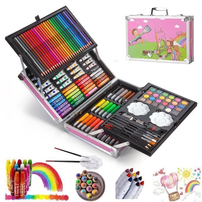 145PCS Set de Dessin EnfantLuxueux Valise Kit DessinMalette dessin Incl PastelAquarelleCrayons CouleursIdéal Cadeaux Enfant
