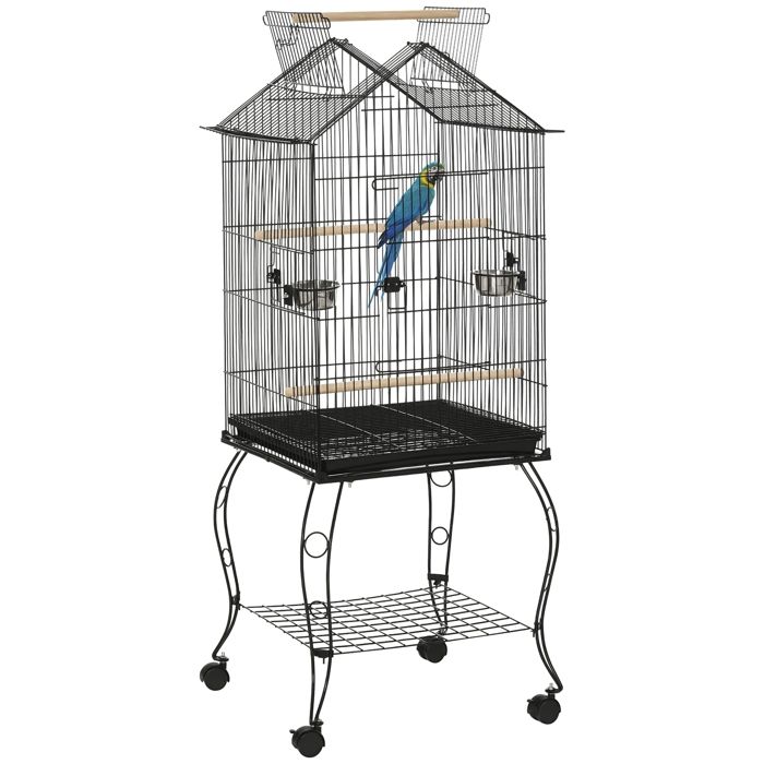 Cage à oiseaux sur pied 2 man 50x58x145cm Noir