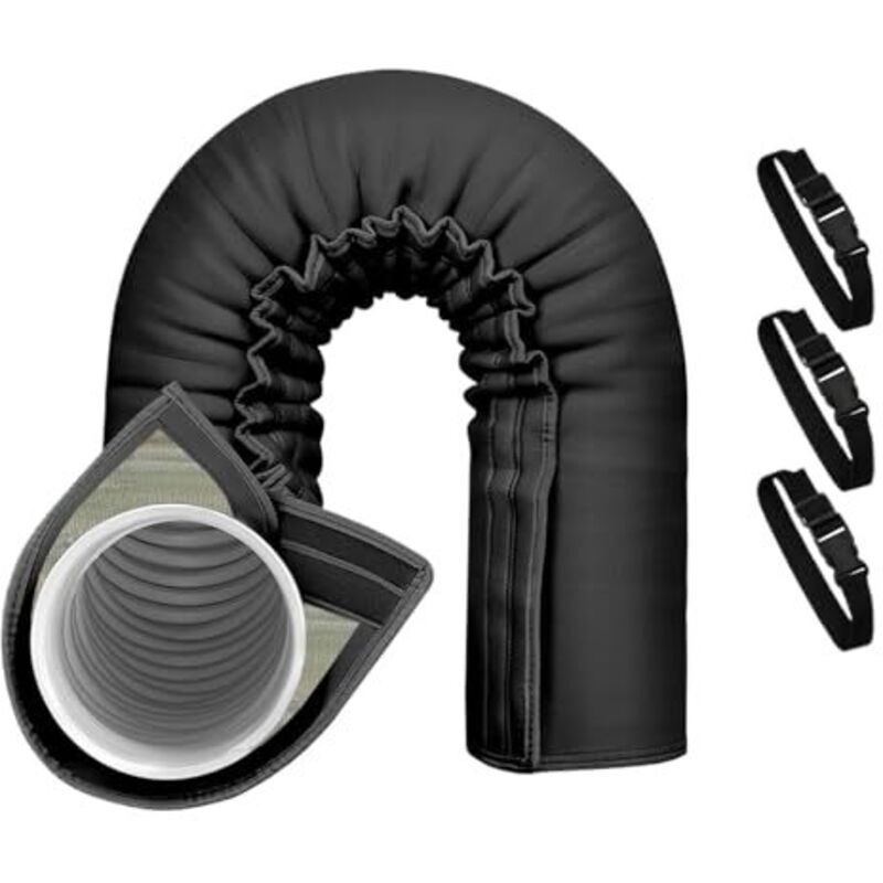VIRELLO Manchon isolant pour tuyau de climatisation, kit de housse de tuyau d'échappement portable avec sangles élastiques, enveloppe d'isolation noire de 150 cm pour tuyaux de 12,7 à 15,9 cm