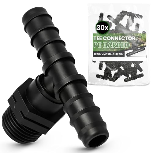 Instalguru 30x Raccord Té PE 16x1/2''x16 mm Connecteur Tuyau Arrosage Goutte À Goutte Jonction Système Irrigation Jardin Accessoire Plomberie Manchon Union Tube Polyéthylène Eau Potager
