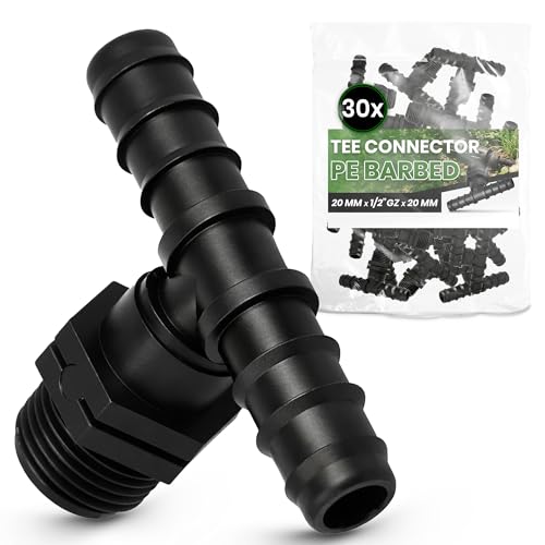 Instalguru 30x Raccord Té PE 20x1/2''x20 mm Connecteur Tuyau Arrosage Goutte À Goutte Jonction Système Irrigation Jardin Accessoire Plomberie Manchon Union Tube Polyéthylène Eau Potager