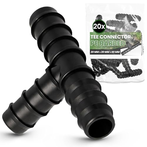 Instalguru 20x Raccord Té PE 20x20x20 mm Connecteur Tuyau Arrosage Goutte À Goutte Jonction Système Irrigation Jardin Accessoire Plomberie Manchon Union Tube Polyéthylène Eau Potager