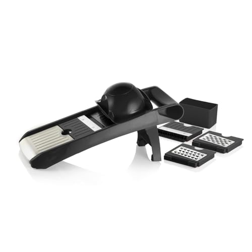 COOK CONCEPT, KD0001, Mandoline 4 en 1, ustensile de cuisine polyvalent, découpe facile, ergonomique, avec bac de récupération, stabilité optimale, matériaux durables - Noir