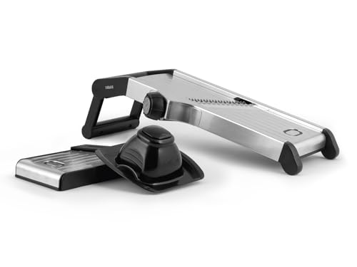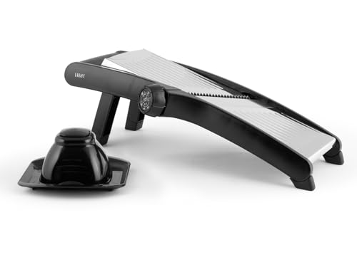 H&H Trancheuse en acier inoxydable et ABS avec poignée et protège-doigts – Mandoline de cuisine manuelle – Coupe-légumes sûr et pratique pour fruits et légumes