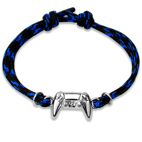Ernestine - Bracelet gamer manette playstation - bracelet acier inoxydable et cordon réglable - idée cadeau joueur console de jeu PS5 - cadeau d'anniversaire gamer - Noël, fête des pères, papa
