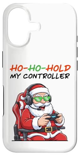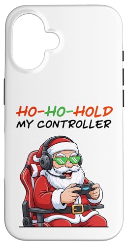 Père Noël Amusant avec Un Joueur de Noël Qui Tient ma Manette Coque pour iPhone 16