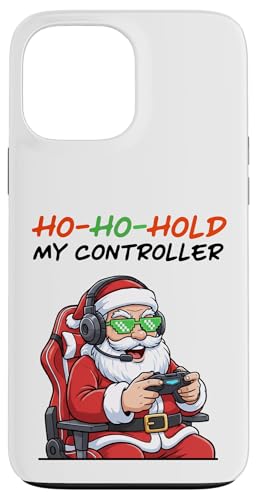 Père Noël Amusant avec Un Joueur de Noël Qui Tient ma Manette Coque pour iPhone 13 Pro Max