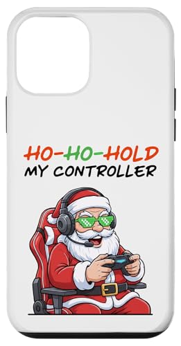 Père Noël Amusant avec Un Joueur de Noël Qui Tient ma Manette Coque pour iPhone 12 Pro Max
