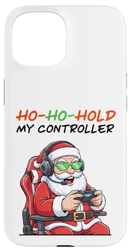 Père Noël Amusant avec Un Joueur de Noël Qui Tient ma Manette Coque pour iPhone 15