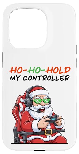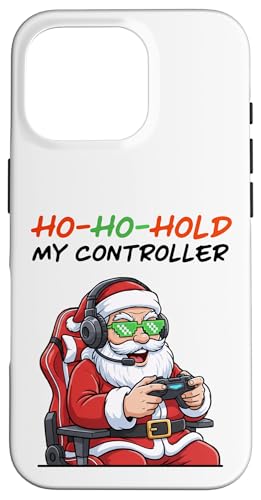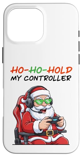 Père Noël Amusant avec Un Joueur de Noël Qui Tient ma Manette Coque pour iPhone 16 Pro