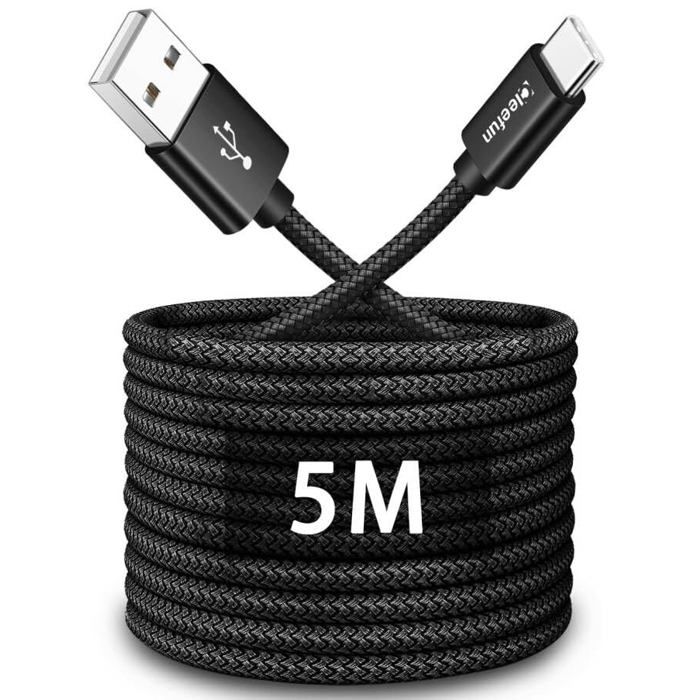 Cable USB C 5M Résistant USB 2.0 Câble USB A vers USB C Chargeur Type C pour Manette PS5 pour iPhone Pour Samsung Galaxy