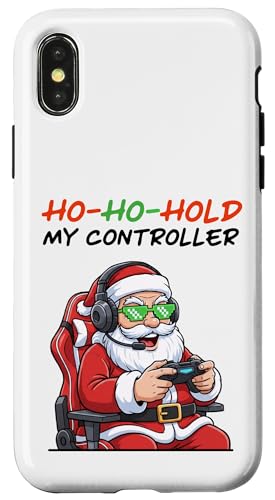 Père Noël Amusant avec Un Joueur de Noël Qui Tient ma Manette Coque pour iPhone X/XS
