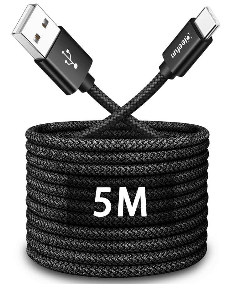Cable USB C 5M, Résistant USB 2.0 Câble USB A vers USB C, Chargeur Type C pour Manette PS5, pour iPhone 16/15 Pro Max, Pour Samsung Galaxy S25 S24 S23, A16 A15, Caméra Surveillance