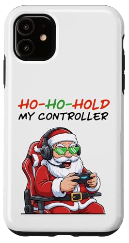 Père Noël Amusant avec Un Joueur de Noël Qui Tient ma Manette Coque pour iPhone 11