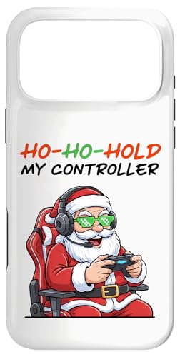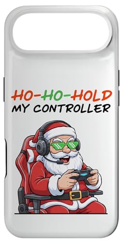 Père Noël Amusant avec Un Joueur de Noël Qui Tient ma Manette Coque pour iPhone 17 Pro