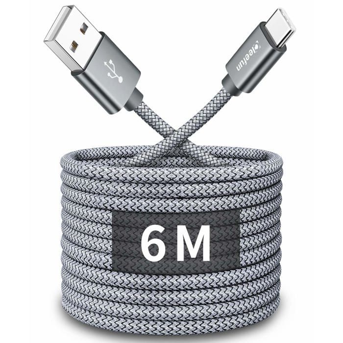 Senior-Cable Usb C 6M, Plus Résistant Usb 2.0 Câble Usb A Vers Usb C Pour Manette Ps5, Pour Iphone 16/15 Pro , Galaxy S25 S24 S23, A16 A15, Enceintes Bluetooth, Caméra Surveillance[L812]