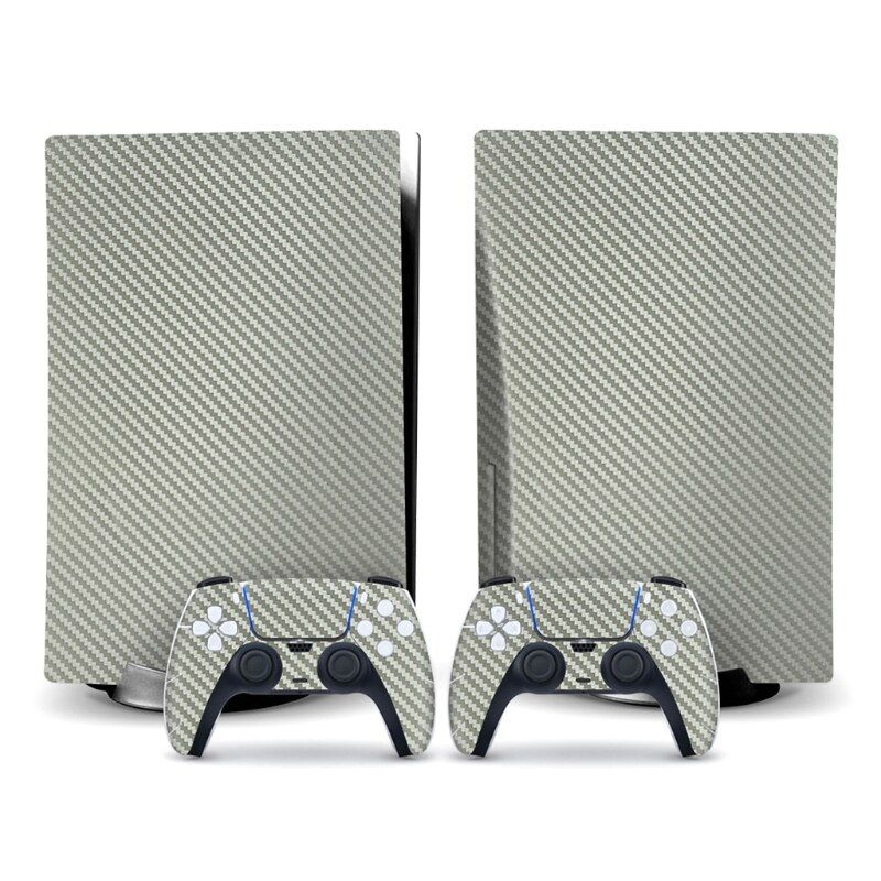 Autocollant console et manette pour PS5, PlayStation 5 - Skin de jeu haute performance - Accessoires de protection - Carbone - Argent