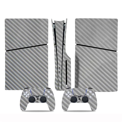Autocollant console et manette pour PS5, PlayStation 5 - Skin de jeu haute performance - Accessoires de protection - Carbone - Argent