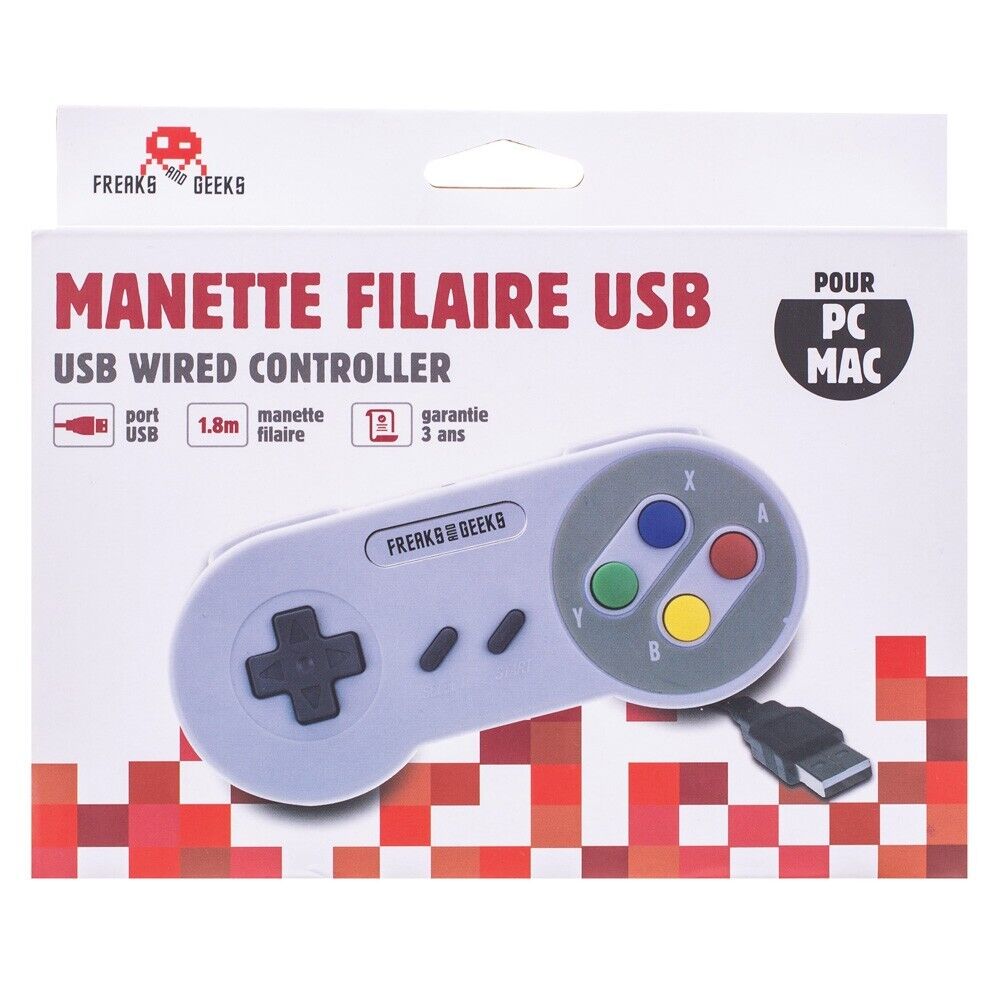 Manette Filaire Rétro USB forme SNES PC/MAC Windows98,XP,ME7,8,10,11 Freaks Geek