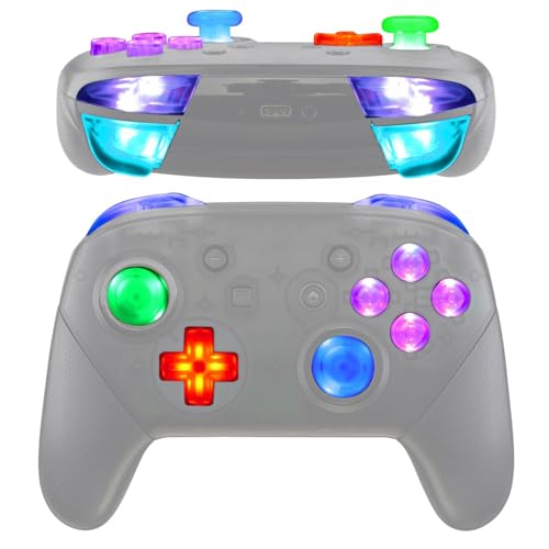 eXtremeRate LED Boutons de Remplacement pour Nintendo Switch Pro Manette, DTFS LED Kit Boutons Lumineuses Joysticks Dpad ABXY ZR ZL L R pour Manette Switch Pro, 9 Modes de Couleurs, Transparent