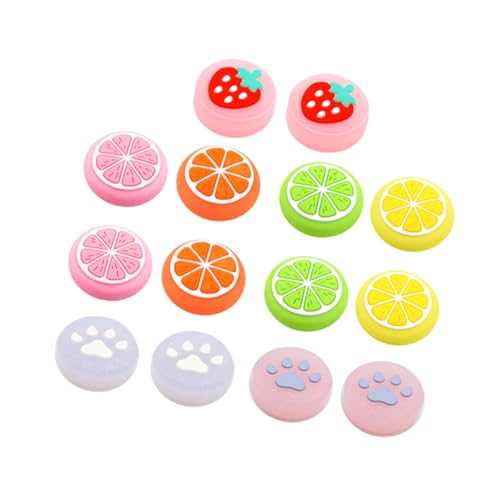 OKUMEYR Capuchons De Joystick Switch Phosphorescents 14 Pièces Motif Fruits Et Griffes De Chat, Protections Silicone Antidérapantes Pour Manette De Jeu, Multi-couleurs, Pour Joueurs Nocturnes