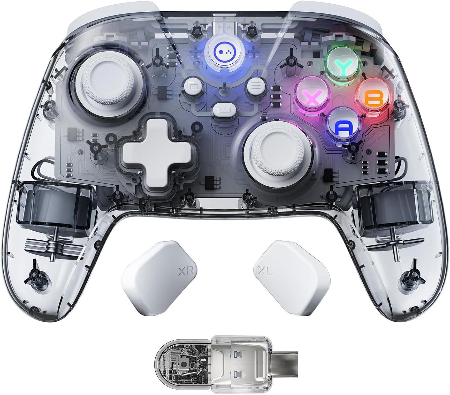 Manette Pc Sans Fil 2.4g Avec Joysticks Et Gâchettes À Effet Hall, Manette De Jeu Pour Windows/Android/Steam Deck/Iphone/Switch 2, Gamepad Bluetooth Avec 8 Couleurs Rgb/Turbo - Transparent