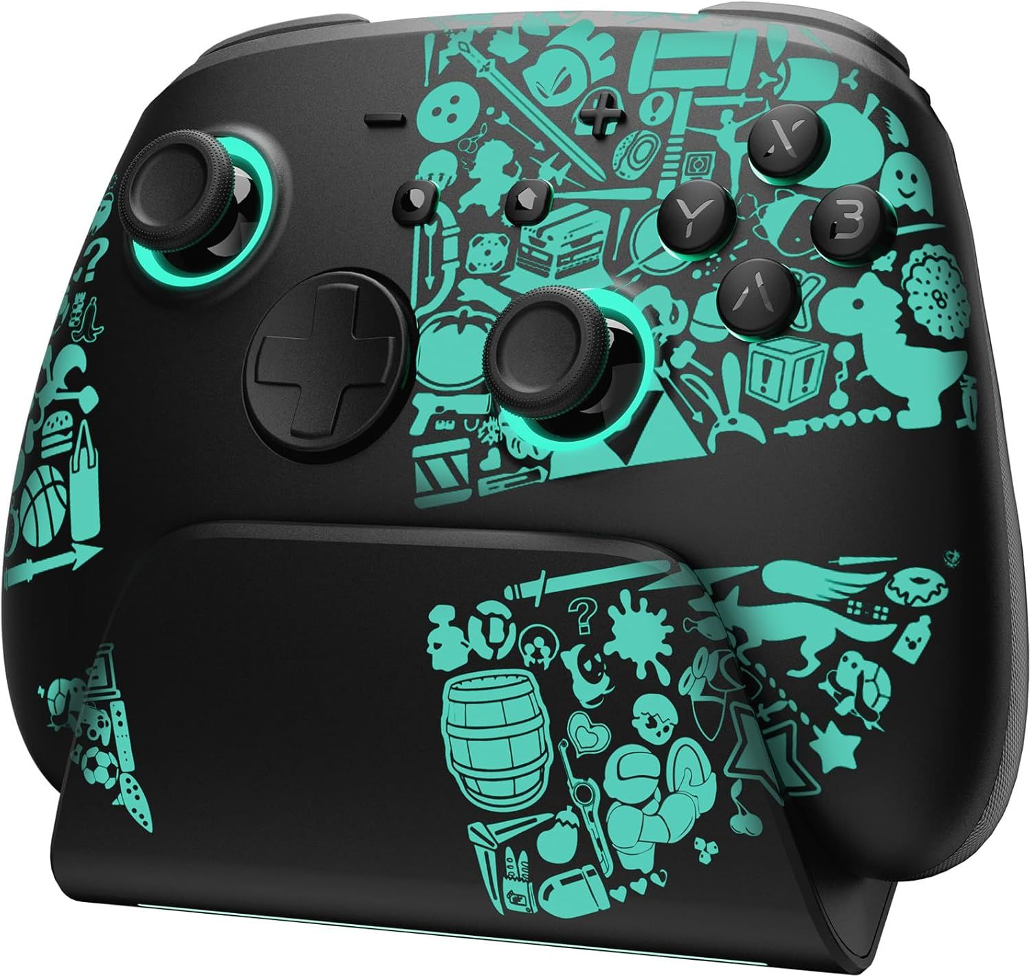 RREAKA Manette de jeu pour Nintendo Switch, Manette Switch Pro sans fil pour Joycon, Poignée télécommande portable Switch OLED avec 8 couleurs RGB, TURBO réglable, Vibration à double moteur (YS42-2)