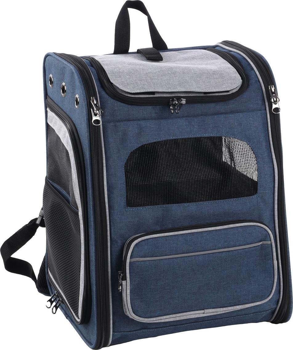 Sac à Dos Chat – Chien – Flamingo Manfred Bleu – 31×33×43 cm – Polyester + Mousse – Ouvertures Haut & côté – 4 Poches – – Sangle sécurité – Bretelles/Ceinture – Flap Enroulable – Pieds