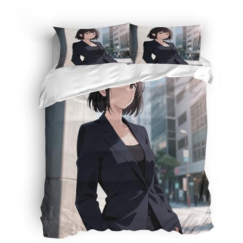 BARDYS Jolie Fille pour Adultes Et Enfants 3D Imprimé Manga Housses De Couettes Housse De Couette E avec Fermeture À Glissière Microfibr Parure De Lit avec Taies 3 Pièces King(220x240cm)