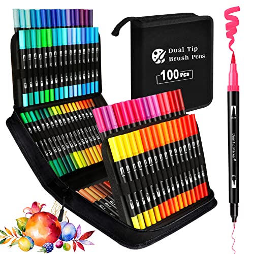KAZATE Feutres Coloriage Adulte, 100 Couleurs Feutre Double Pointe Aquarelle Stylos Pointe Fine Enfants pour Dessin, Mandalas, Manga, Doodling, Scrapbooking