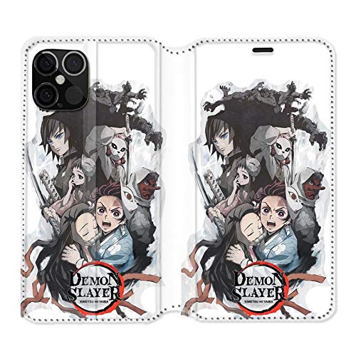 Cokitec Housse Cuir Portefeuille pour Iphone 12/12 Pro Manga Demon Slayer Blanc