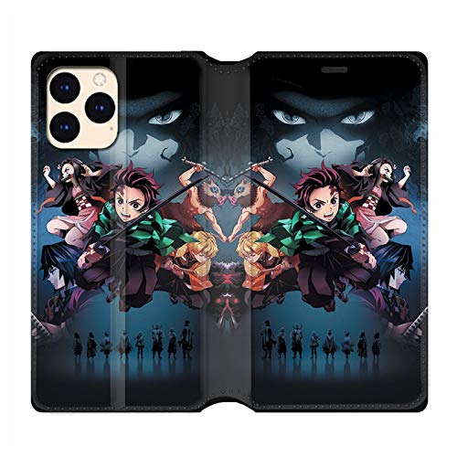 Cokitec Housse Cuir Portefeuille pour Iphone 12 Mini Manga Demon Slayer Noir