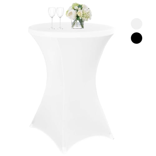 SINSSOWL Spandex Housse de table mange-debout 80-85 cm Blanc Nappe Décoration pour mariages, fêtes, bars, banquets et événements, 1 pièce, blanc