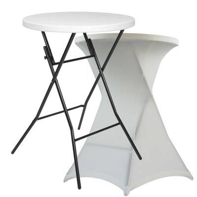 Housse pour mange-debout Teruntrue en blanc, nappe extensible avec poches pour pieds pour Ø 80-85 cm tables debout et tables de bistro, housse pour mange-debout pour mariage, fête d'anniversaire