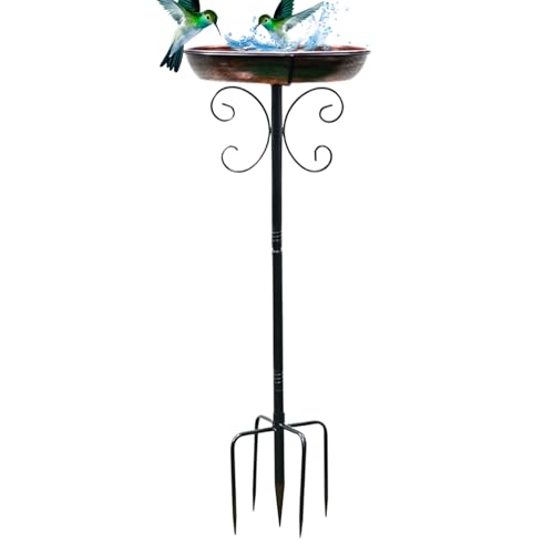 kowaku Mangeoire à Oiseaux Bain sur Pied Plateau d'alimentation et Distributeur de Graines en Fer avec Ancrage Au Sol Adapté pour Décorer Le Jardin, Brun Doré